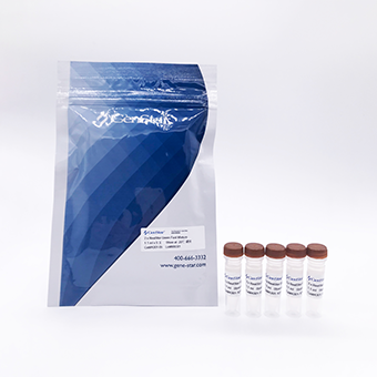 本產(chǎn)品是采用 SYBR Green I 嵌合熒光法進行實時熒光定量 PCR 的專用 2× 濃度預(yù)混液。產(chǎn)品含有優(yōu)化濃度的 GenStar Power HSTaq DNA Polymerase、SYBR Green I、dNTPs、Mg2+、反應(yīng)緩沖液和穩(wěn)定劑等成分。主要用于基因組 DNA 靶序列和 RNA 反轉(zhuǎn)錄后 cDNA 靶序列的檢測。Power HSTaq DNA Polymerase 在 75℃ 以下溫度沒有活性, 從而有效避免在常溫條件下由引物和模板非特異性結(jié)合或引物二聚體而產(chǎn)生的非特異性擴增,酶的激活需要 95℃ 孵育 10 min。反應(yīng)體系可在室溫下配制,無需在冰上完成,操作方便。優(yōu)化濃度的 SYBR Green I 熒光染料,特異性地摻入 DNA 雙鏈后,熒光信號增強,而不摻入鏈中 SYBR Green I 染料分子熒光信號不變,從而保證熒光信號的增加與 PCR 產(chǎn)物的增加完全同步,熒光可以在退火或延伸階段測定。 本產(chǎn)品為 2× 預(yù)混化學(xué)修飾型熒光定量 PCR 反應(yīng)體系(含 ROX),使用時只需加入模板、引物和水,使其工作濃度為 1×,即可進行反應(yīng)。具有快速簡便、靈敏度高、特異性強、穩(wěn)定性好等優(yōu)點,可減少人為誤差、節(jié)約 PCR 實驗操作時間、降低污染幾率。