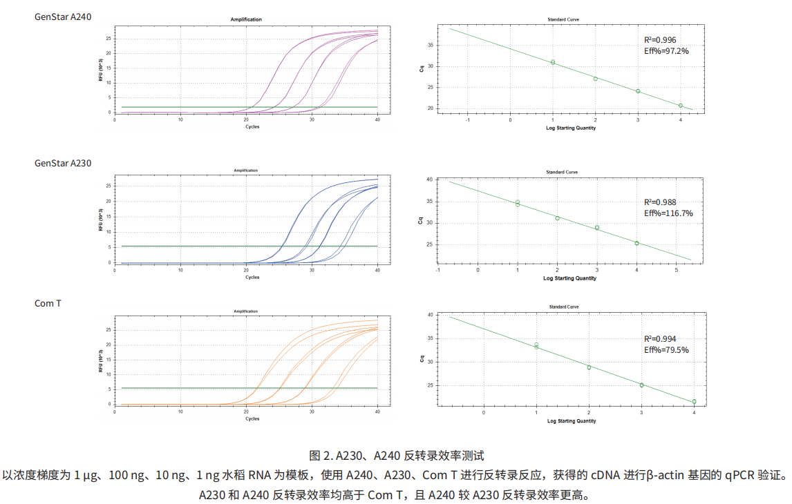 GenStar A230、A240 可有效去除 gDNA,保證擴(kuò)增結(jié)果的準(zhǔn)確性,避免 gDNA 殘留對(duì) qPCR 結(jié)果的干擾