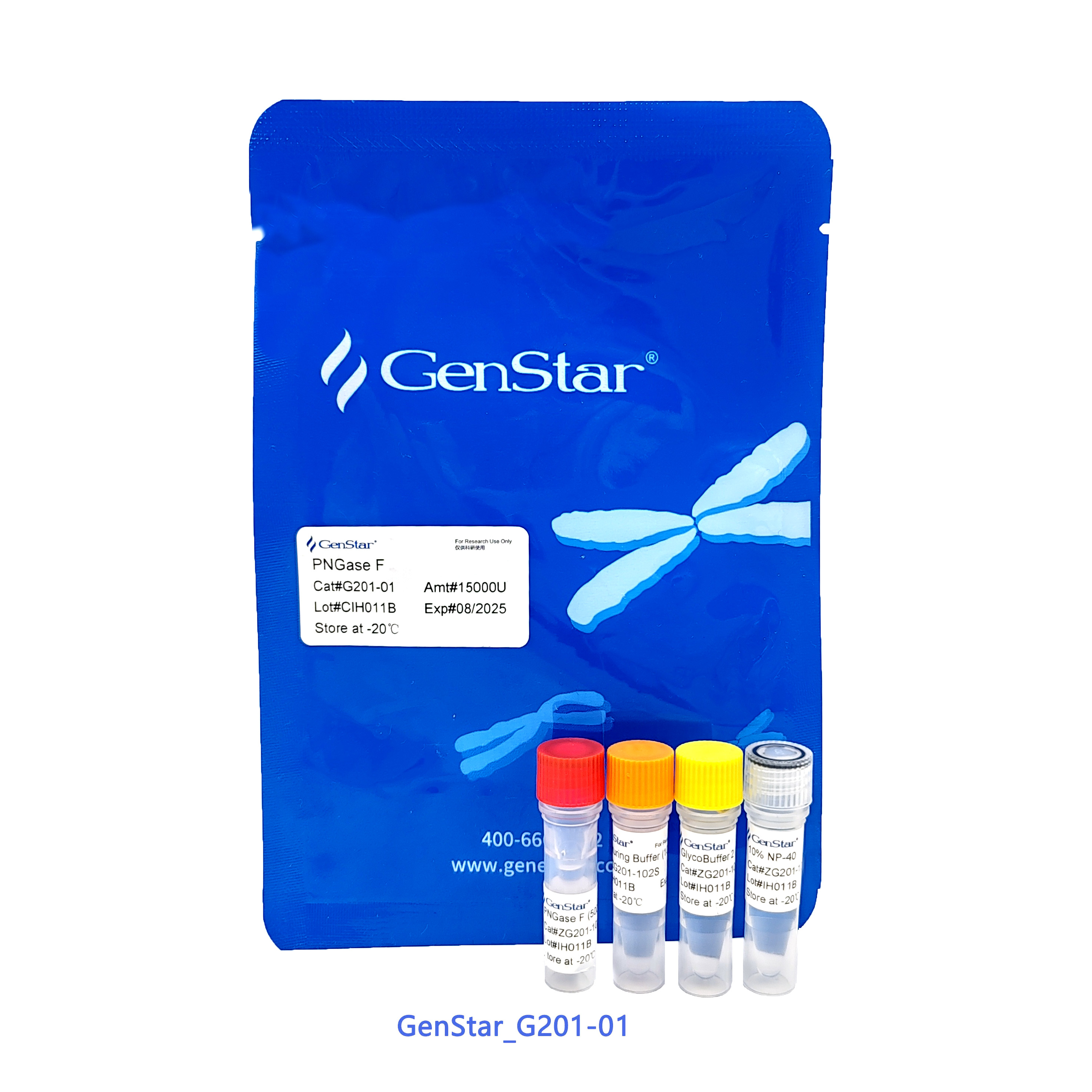 肽N-糖苷酶 F(PNGase F)是一種酰胺水解酶,克隆自和平空間站伊麗莎菌(Elizabethkingia miricola, formerly Flavobacteriummeningosepticum),在大腸桿菌中重組表達(dá)。PNGase F 可以裂解由天冬酰胺連接的高甘露糖,及雜合和復(fù)雜的寡糖糖蛋白。PNGase F 切割位點(diǎn)為糖蛋白內(nèi)側(cè) N-乙酰葡萄糖胺(GlcNAc)和天冬酰氨殘基之間的酰胺鍵,同時(shí)將酶解后蛋白上的天冬氨酰轉(zhuǎn)化為天冬氨酸,而不會(huì)去除常見(jiàn)植物糖蛋白上含有核心 α-(1,3)-巖藻糖 連接的寡糖。本產(chǎn)品常應(yīng)用于抗體及其相關(guān)蛋白完全去糖基化。