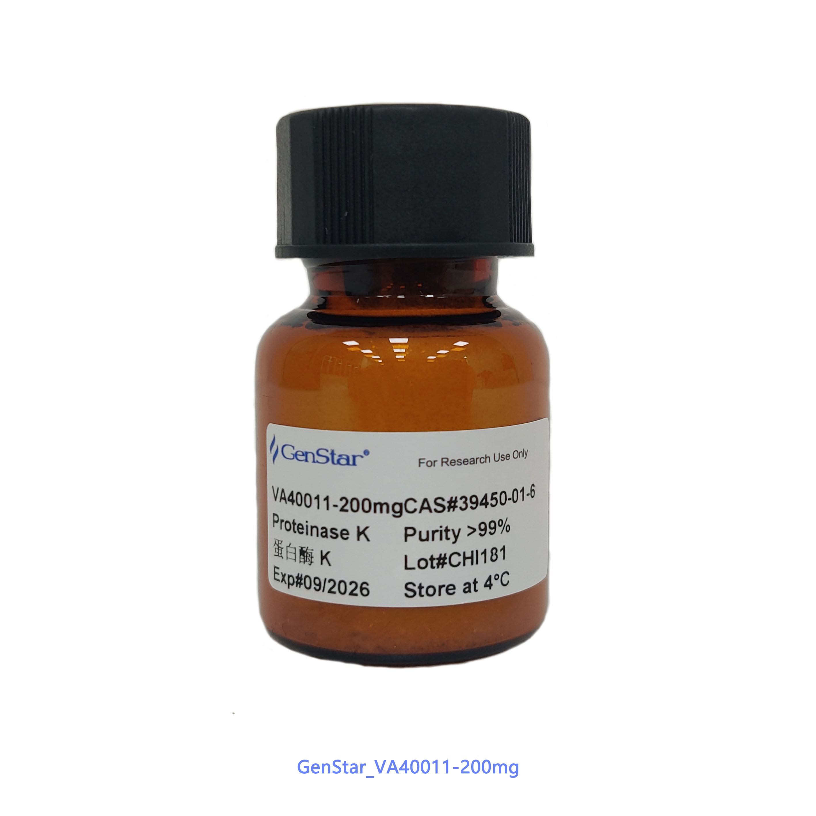 Proteinase K(蛋白酶 K)是一種廣譜的、高活性絲氨酸蛋白酶,其活性受 pH 值、高溫、EDTA、去垢劑和尿素等因素的影 響較小,因而被廣泛應(yīng)用于核酸提取和純化時促進(jìn)細(xì)胞裂解、去除蛋白質(zhì)污染,蛋白結(jié)構(gòu)和功能分析,也可用于酶促反應(yīng)后, 酶的消化去除等。