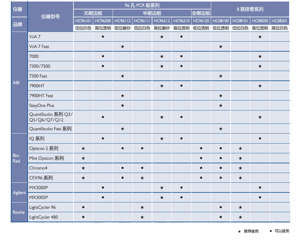 Bio-Rad 的 Opticon2 系列、Mini Opticon 系列、Chromo4、CFX96 系列