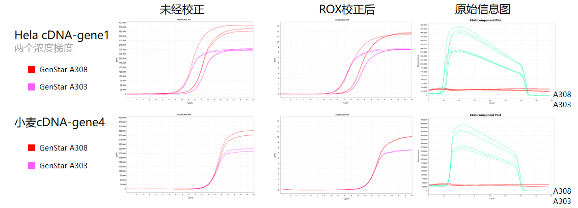 經(jīng)驗證,A308 在 Low ROX 適用儀器上可進行正常校正,且 ROX 校正后效果優(yōu)于 A304。