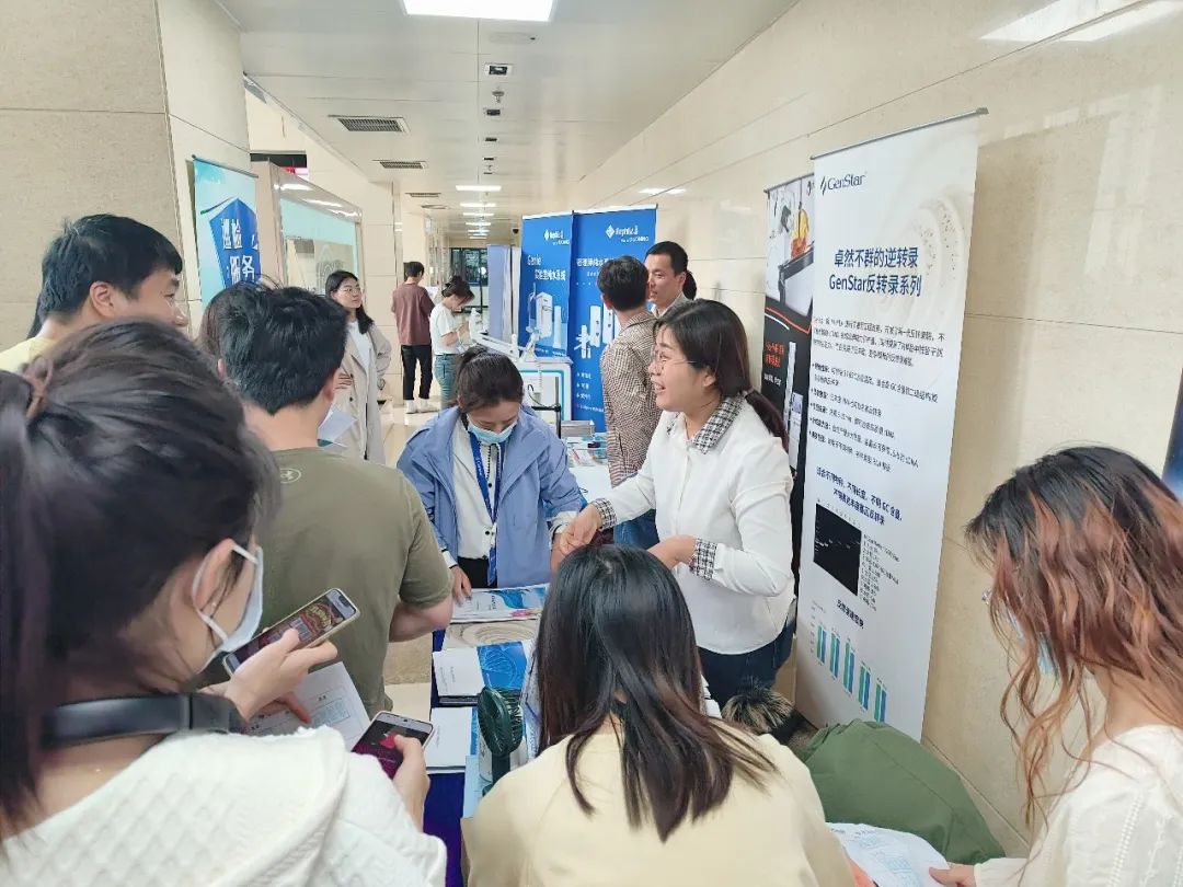 本次北京科院行,GenStar的核心產(chǎn)品成為了中科院師生們重點(diǎn)的關(guān)注對象,其中特別是高保真酶、DNA Marker、一管化反轉(zhuǎn)錄等產(chǎn)品是關(guān)注人氣最高的產(chǎn)品。GenStar特意準(zhǔn)備了這些產(chǎn)品的試用裝直接現(xiàn)場派發(fā),眾多師生紛紛簽字登記領(lǐng)取,兩天內(nèi)就派發(fā)出上百份。老客戶驚喜于產(chǎn)品的疊代升級,新朋友則對試用滿懷期待,無論新老客戶,都能在GenStar的展臺得到滿意的收獲。
