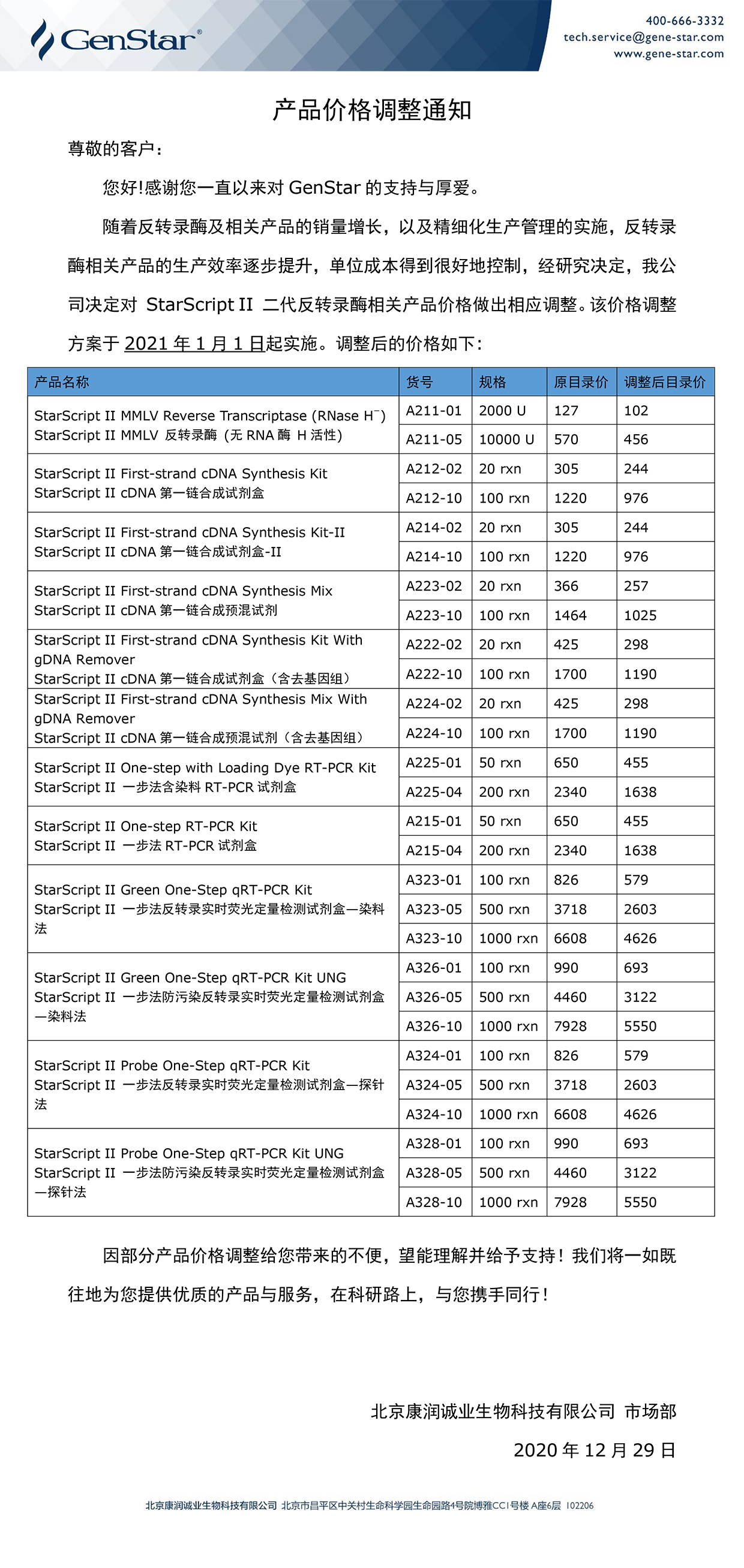 qPCR耗材相關(guān)產(chǎn)品價(jià)格調(diào)整